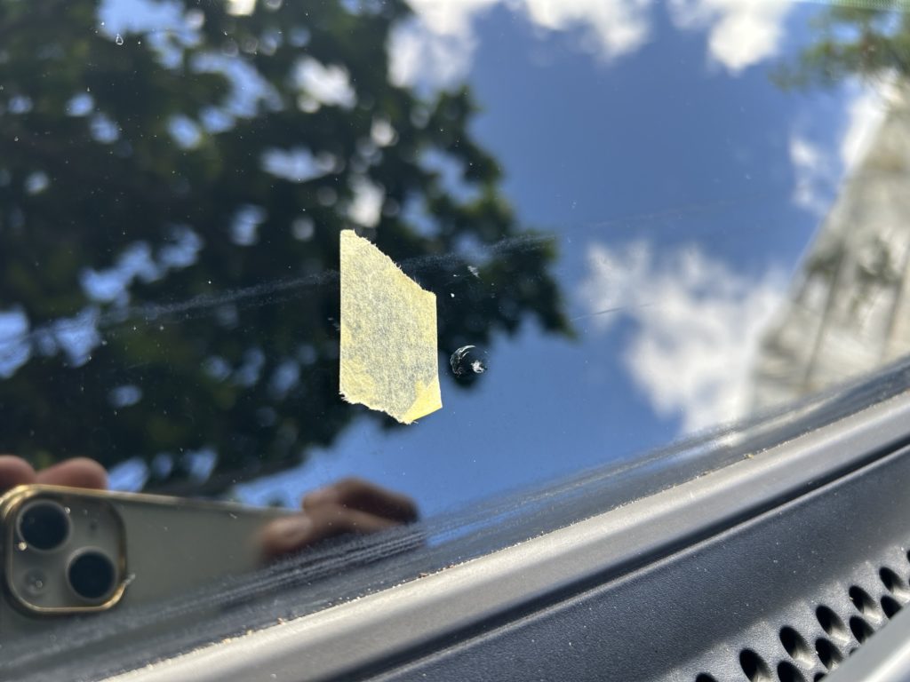 お客様より「走行中に飛び石を受け、小さなヒビが入ってしまった。交換になると高額なので、なんとか直したい」との切実なご相談をいただきました。