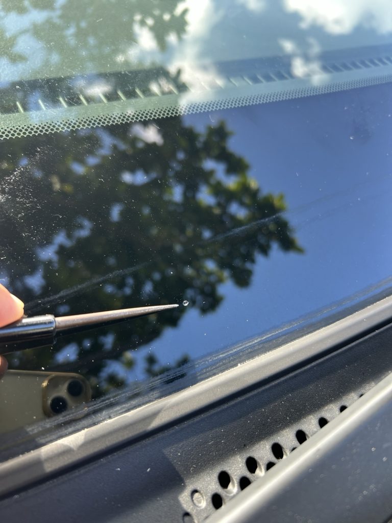 * リスク: 走行時の振動やエアコンの温度変化で、ヒビが一気に伸びる危険が高い位置です。